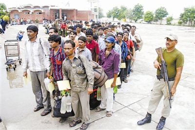 8月24日,在巴基斯坦东部边境城市拉合尔,被巴方释放的印度在押人员等待被送往瓦格赫边境移交给印方。巴方当天释放了337名印度在押人员,他们当中大部分为印度渔民。报道说,这些已服满刑期的在押人员被从卡拉奇监狱释放,送往旁遮普省首府拉合尔,通过瓦格赫边境移交给印方。