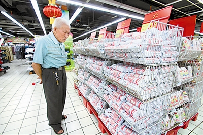 8月27日中午,一位老者在浙江绍兴市区一家大型超市推出的月饼一条街前选购月饼。虽然中秋佳节还有一段时间,但是精明的商家早早地布置好各式月饼。而今年的传统简装月饼备受青睐。