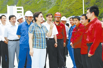 四川省委常委、省总工会主席李登菊(女)在锦屏工地考察