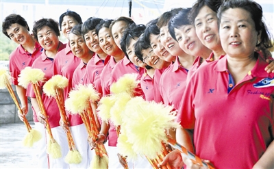 十二运会追求节俭,开幕式表演群众成为主角。这是参加开幕式表演的老年人健身团队成员在排练后合影。新华社记者 岳月伟 摄