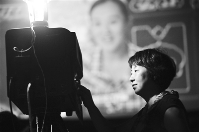 崔桂贞操作数字放映机 。