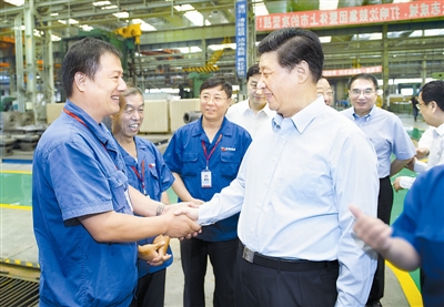 在沈阳机床集团,他在一台台数控车床旁驻足,了解加工和总装工艺。了解到公司年轻研发团队自主开发的智能数控系统质量和性能居世界前列、打破了国外企业长期垄断,习近平十分高兴,夸赞他们长了中国人志气。他指出,要发展集战略性新兴产业和先进制造业于一身的高端装备制造业,培育新兴装备制造产业集群。要大力培育支撑中国制造、中国创造的高技能人才队伍。他希望年轻一代坚定创新超越、产业报国的远大志向,为发展壮大实体经济多作贡献。