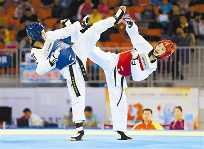 跆拳道比赛,解放军的李照艺夺得女子49公斤级金牌,这也是解放军代表团获得的开幕后首金。江苏的赵帅获得男子58公斤级金牌。