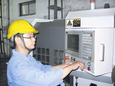 走进扈海安徒弟的工作区域,一阵阵空调吹来的风凉飕飕的,记者发现这里简直是服务中心的“世外桃源”,扈海安调皮地对记者说:“你看我徒弟工作环境都比我的好多了!”当徒弟拿着图纸过来问他的时候,扈海安转而变得很认真,一点一滴地给徒弟讲解,亲自示范如何编程序,并蹲下身子观看零件的打磨情况,一丝不苟的态度跟之前戏谑的态度判若两人。