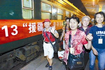 9月4日晚10时,在河南省商丘火车站,即将踏上“援疆号”旅游专列的120名乘客脸上洋溢着欢快的笑容。