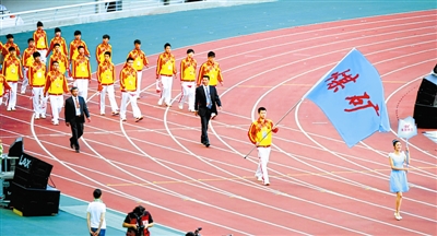 煤矿体协队在十二运会开幕式上入场。本报记者 许之丰 摄