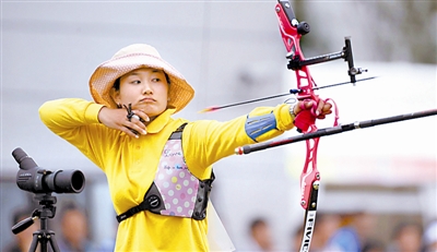 9月5日,十二运会女子射箭个人赛战罢,山东崔圆圆获得金牌。