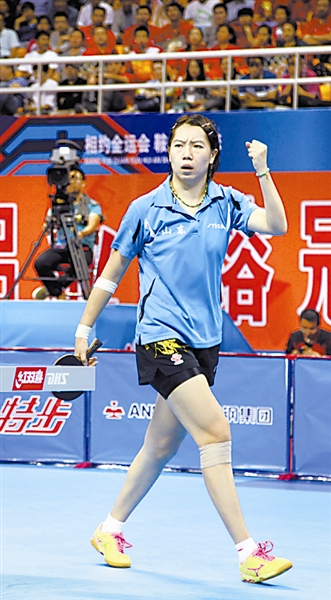李晓霞庆祝胜利。