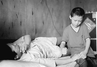 8月27日,12岁的王志华像往常一样照顾着父母的起居生活。王志华家住安徽省合肥市长丰县双墩镇,去年8月,他的母亲张银霞患了重病,被确诊为格林巴列综合症;今年5月,他的父亲王帮富由于多年的骨质疏松、风湿病和骨质增生,最终也病倒。父母因病双双卧床,从此王志华一个人照顾家人、操持家务。
