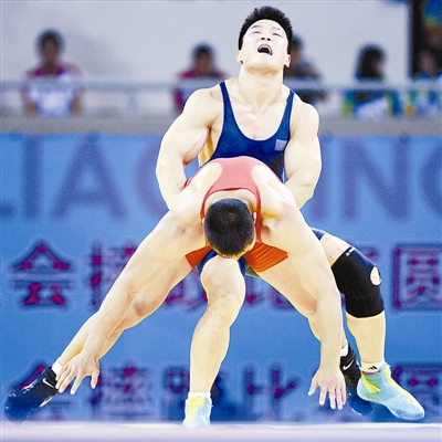 9月7日,山东队选手肖棣(上)获得国际式摔跤项目男子古典式96公斤级冠军。