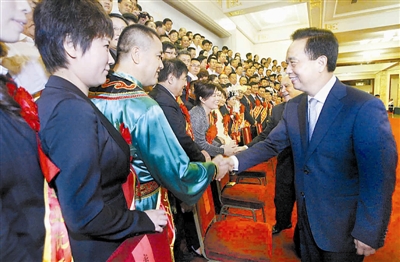 第七届全国民营企业“关爱员工、实现双赢”经验交流暨表彰会议9月9日在北京人民大会堂举行。会前,中共中央政治局委员、中华全国总工会主席李建国会见了优秀民营企业家、优秀职工和先进企业工会代表。 本报记者 杨登峰 摄