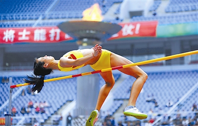 9月10日上午,第十二届全运会田径女子跳高决赛在辽宁省沈阳市奥体中心主体育场进行。福建体育代表团的郑幸娟,以1.92米的成绩夺得金牌。本报记者 许之丰 摄