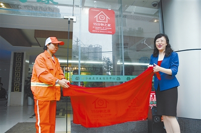 成都市总工会常务副主席冷晓燕为“15分钟之家”授牌