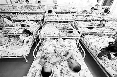 幼儿园孩子在老师的看护下睡午觉 。