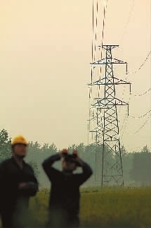 9月14日,国家电网山东省郯城县供电公司工作人员在巡视供电线路。