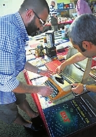 8月25日,在土耳其伊斯坦布尔的费里柯伊跳蚤市场,一名市民正准备购买一台老打字机。