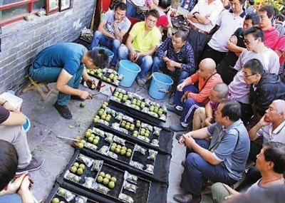 9月15日,北京,十里河古玩市场,正是文玩核桃玩家们聚集在十里河文玩市场“赌青皮”的火爆时候。