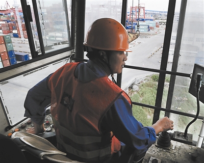 按传统操作法,门座式起重机高挡下降复零往往需要做第二次下降动作,既费时又费力,杂货队门机一班副班长林本张发明了在下降过程中从高挡逐渐退至最低挡再配合旋转变幅后,一次性将货物落到指定位置,这样每个动作可以节约5秒钟,一个班次下来就可节省40多分钟……