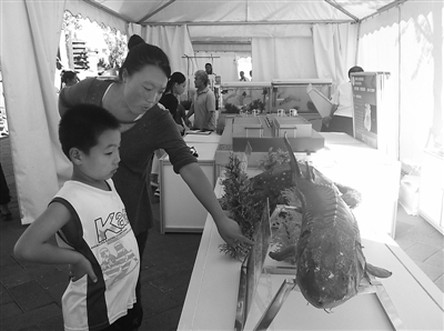 2013全国科普日北京主场活动,于9月14日~20日在北京园博园举行。主办方组织16个学会和16个专业科普机构开展的53项现场科普活动,吸引了北京市民和广大游园者的眼球。图为在鱼标本前,一位母亲在向孩子讲述保护海洋生物的重要性。 萧岱摄