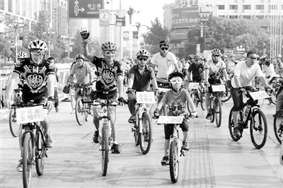 9月21日,广西桂林200多名骑友骑行15公里,呼吁市民减少开车,低碳出行。