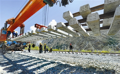 拉日铁路为国家I级铁路,全长253公里,列车运行时速将不低于120公里,全线设拉萨南、曲水、尼木等13个车站,年货运量可达830万吨以上,预计2014年投入运营。拉日铁路建成后将进一步扩大青藏铁路影响范围,改变西藏西南部地区依靠公路运输的单一局面。新华社记者 觉果 摄