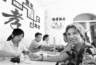 9月24日,在福州市五凤街道白龙社区居家养老服务站,62岁的徐玉贞老人(右一)在进行免费体检。近年来,该市已形成居家养老、社区养老、机构养老加养老服务体系的“3+1”养老模式,建成社区居家养老服务中心(站)472个,让老人们能够真正享受 “老有所养”。新华社记者 魏培全摄