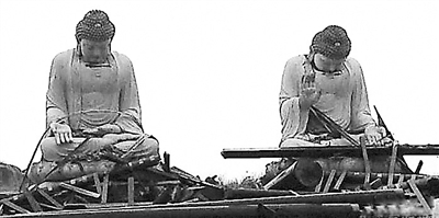 位于广东陆丰市碣石镇的广福寺,耗资近5000万元打造的两尊大佛,在强台风“天兔”登陆汕尾后,经不起考验,双双低下了头。(资料图)