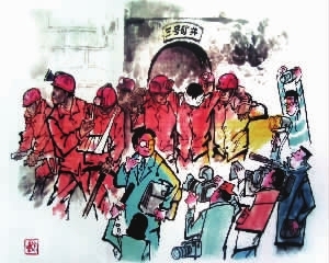 我们喜欢漫画,我们不喜欢矿难。出于社会责任,这一次,漫画家把“镜头”不仅对准了矿难,而且把“镜头”聚焦在矿难营救现场的镜头。