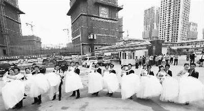 “我们结婚了!”9月23日,中国铁建十六局四公司在昆明举办了一场特别的婚礼,主角是来自该公司五湖四海的10对80后新人。活动以“相约春城、情系铁建”为主题,是该公司创新青年人才工作新思路、关怀青年职工婚恋生活的一项新举措。据了解,该公司还严格遵守“厉行节约、反对浪费”的中央精神,婚礼不设账桌、不收红包,由公司工会统一为每对新人送上3000元礼金,并组织他们畅游西双版纳。 王崇燕 王小强 摄