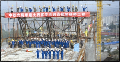 建造历时两年,技术复杂、线性控制难度大的特大桥连续梁工程,其单孔最大跨度可达148米。通车后将为地处我国中部的晋、陕二省增添一条现代化高水准的交通大动脉。9月19日晨,它的主桥梁正式合龙,进入了混凝土连接浇灌工序。上午10时许,记者在主梁连接处拍下了这张中秋工地的大合影。