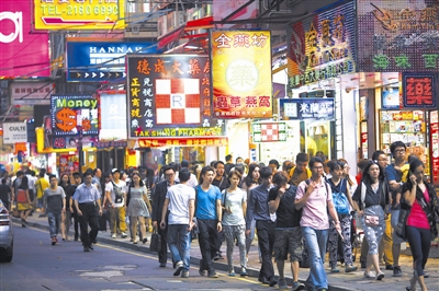 “十一”黄金周期间众多大陆游客赴港游玩购物,但商家表示顾客减少很多,其原因可能是《旅游法》严格禁止强制购物等行为。CFP 供图