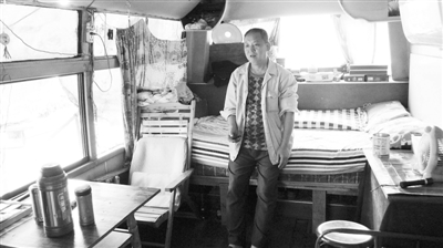 谈起建房车,老范表示主要是源于自己内心的需要。5年前,他来到现在工作的驾校做看车人,每天吃、住都要守在那里。因驾校停车场位于江边,每年夏天都会面临涨水被淹的威胁,停车场需要随时搬迁,若搭建工棚拆卸耗时费力,所以驾校为他值夜班先后提供了一辆老式吉普车和简易帐篷。“吉普车睡觉伸不开腿、穿衣服直不起腰,一到夏天在车里根本没法睡,搭帐篷每天都要收放很是麻烦!”老范说,这辆报废金龙大巴的到来,好似专门为他而准备。驾校老板把大巴交到老范手里后,他便开始了对其变废为宝的改装。“一开始也没什么详细的规划,就是想起哪样做哪样。”老范说。