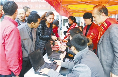 龙岩工会帮助返乡农民工义务订车票。 黄秀珍 摄