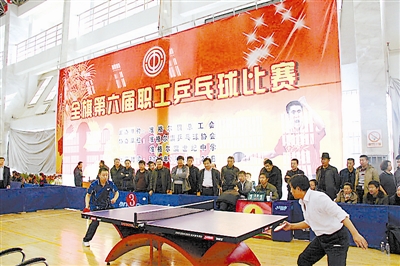 准格尔旗总工会主办的全旗乒乓球比赛现场