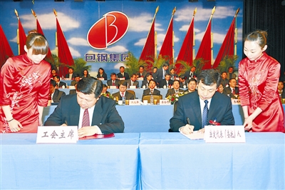 公司总经理李春龙和公司党委常委、工会主席李金贵签订平等协商集体合同