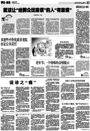 一些地方百姓办事难的问题不是一天两天了。央视的监督很有力度,问题是,不是每一个被找麻烦的群众身后都能有幸站着一个为他撑腰的央视记者,如果没有媒体曝光,群众怎么让那些找麻烦的人有麻烦?