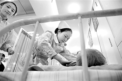 10月14日,国务院发布《关于促进健康服务业发展的若干意见》。这是我国首个健康服务业的指导文件。我国将大力发展健康服务业,力争到2020年,总规模达到8万亿元以上。健康服务业主要包括医疗服务、健康管理与促进、健康保险以及相关服务,涉及药品、医疗器械等相关产业。图为3月5日,天津,医务人员在为老年人做医疗保健护理服务。李胜利 摄/东方IC