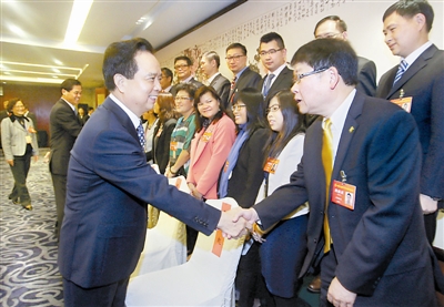 陈豪、张鸣起、江广平等全总领导一同会见。(图为本报记者 杨登峰 摄)