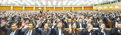 10月17日下午,中国工会第十六次全国代表大会预备会议在北京人民大会堂举行。图为预备会会场。