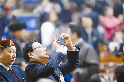代表们的手机派上了大用场 。 本报记者 于文国 摄