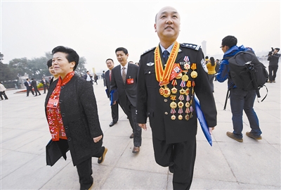 陈勇琦代表是本次会议上佩戴奖章最多的人 。 本报记者 许之丰 摄