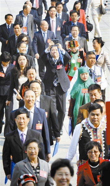 代表们满载着全国亿万职工群众和广大工会工作者的重托出席盛会。本报记者 杨登峰 摄