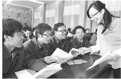 职工大学教师在为参加 “ 首都农民工大学生助推计划 ” 的农民工考生辅导