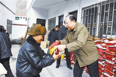 洛阳市总工会党组书记、常务副主席张冀昌为困难职工发放日常生活用品