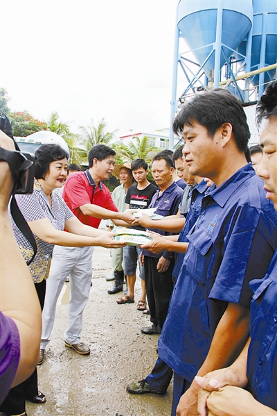 三亚市人大常委会副主任、市总工会主席刘丽玲一行送解暑慰问品给一线职工