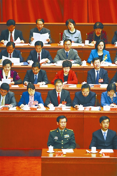 重庆市人大常委会副主任、市总工会主席郑洪(二排中),在十六大开幕式主席台就座