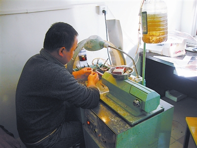 王师傅告诉笔者,自己老家在江苏扬中县,由于村子里很多人干这一行都赚了钱,所以他也“拜师学艺”。从学徒工算起,王师傅已经从事玉雕工作8年多了,因为自己技术好,还带了两个徒弟,“现在一个月能挣1万2000多元。”但他表示,学好这门手艺并不容易。“从简单的琢磨到精雕细刻,从加工烟嘴、手镯等简单的小件,到中等件、大型玉雕作品,学徒工怎么也得需要两三年的时间,打磨上百个玉石。”