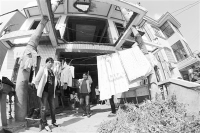 10月16日,浙江省绍兴市,几位来自安徽、河南等地的农民工正在市区东浦镇塘湾村一座被拆掉三楼房顶、部分阳台、墙壁门窗、摇摇欲坠的危楼中生活着。