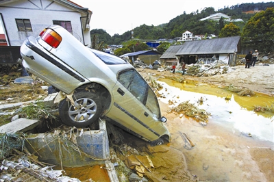10月23日,马来西亚中部彭亨州旅游胜地金马仑高原附近一处水库因连续降雨而开闸泄洪,致使下游村镇受淹,多处房屋损坏,至少三人身亡。图为洪水过后村镇一片狼藉。吉平 供图