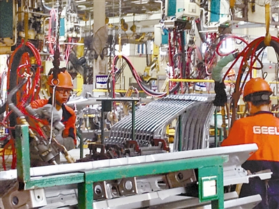 吉利集团向丰田、大众公司对标管理,宁波北仑工厂的工人们按照全球质量标准执行每一道生产工序。本报记者 于宛尼 摄